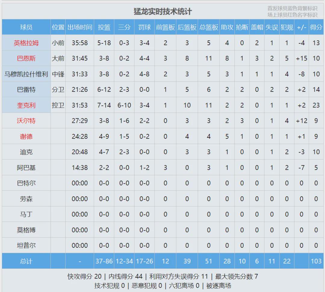 最后看看这一场的比赛数据,说说你的感受: