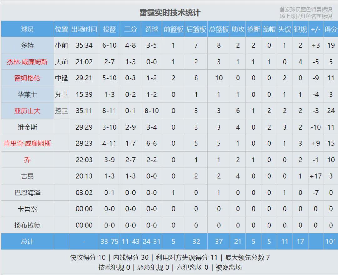 上赛季雷霆68胜14负,本赛季常规赛刚刚过半,他们已经输了10场,恐怕连68胜都拿不到了。先来看看本场数据:
