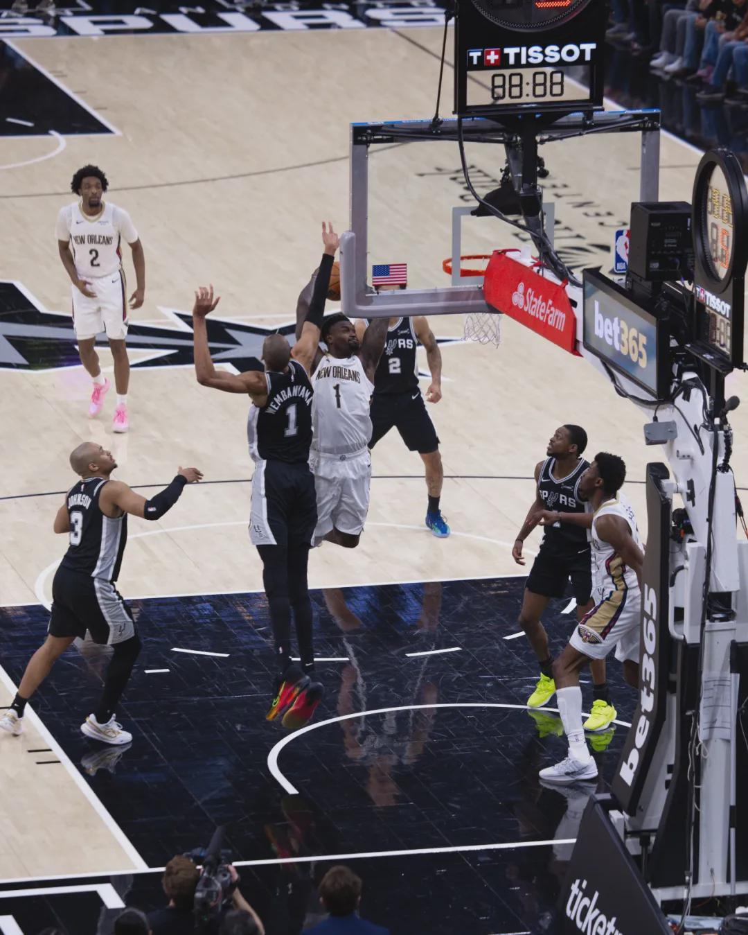 接下来说说马刺和鹈鹕这一场,鹈鹕篮板球58-46领先马刺,前场篮板19-10碾压马刺。锡安18中10砍下24分10板4助,文班16中6拿到16分16板4帽。过去一个月马刺只有8胜8负,约老师近一个月都没打比赛,掘金依然追平了马刺。